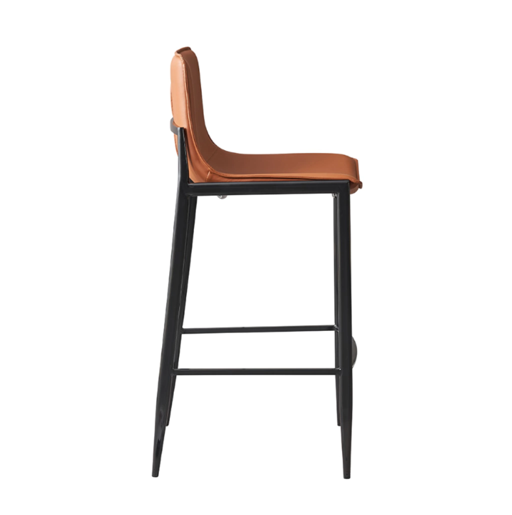 Banqueta estofada em poliuretano e base em aço pintada à pó.