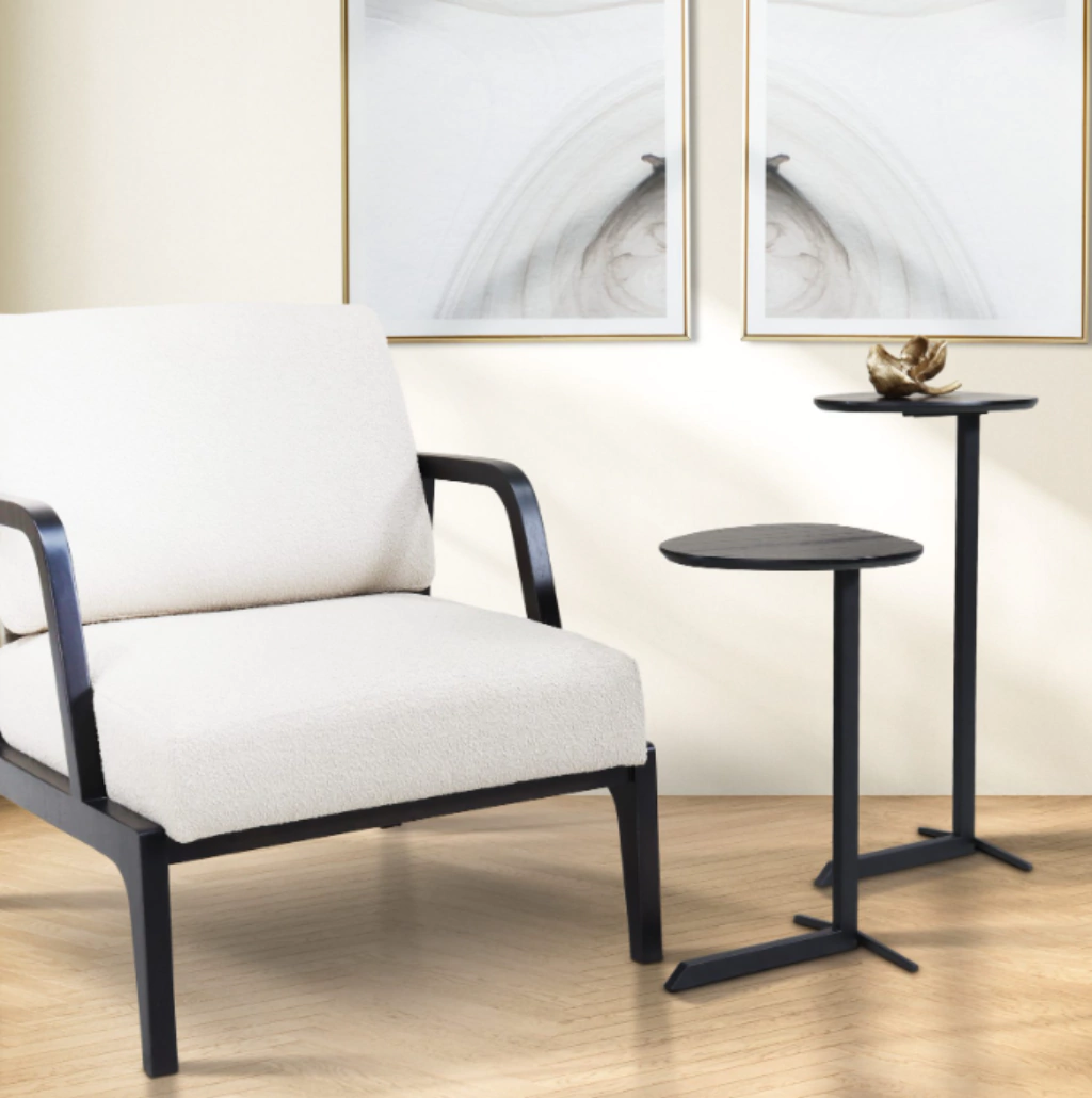 Tampo produzido em MDF com lâmina em madeira de cinamomo, sua base em metal pintura epóxi.